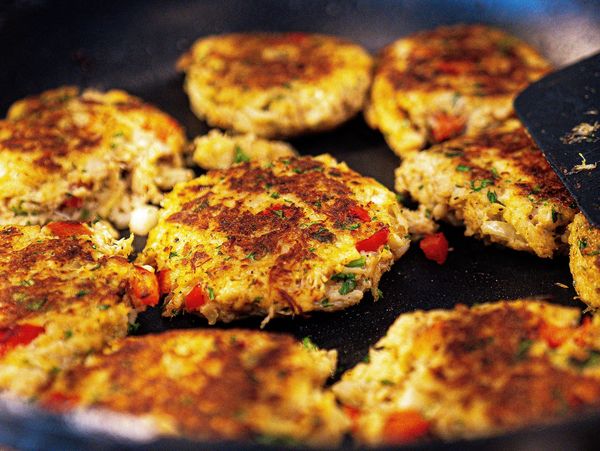 Rested on a delicate roasted red pepper coulis, topped with lemon aioli and roasted jalapenos.